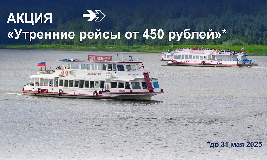Вы любите утренние прогулки на свежем воздухе? Тогда специально для вас утренние рейсы по выгодным ценам*, ведь уникальное географическое положение города словно создано для речных прогулок, которые подарят вам незабываемые впечатления!