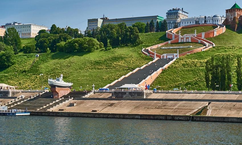 Чкаловская лестница соединяет три значимых объекта на Нижне-Волжской набережной –катер «Герой», памятник Валерию Чкалову и Нижегородский кремль.