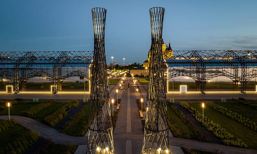 К 800-летию города Канавинский мост получил архитектурно-художественную подсветку — теперь ночью он выглядит совершенно иначе, чем строгий советский проект 1933 года.
